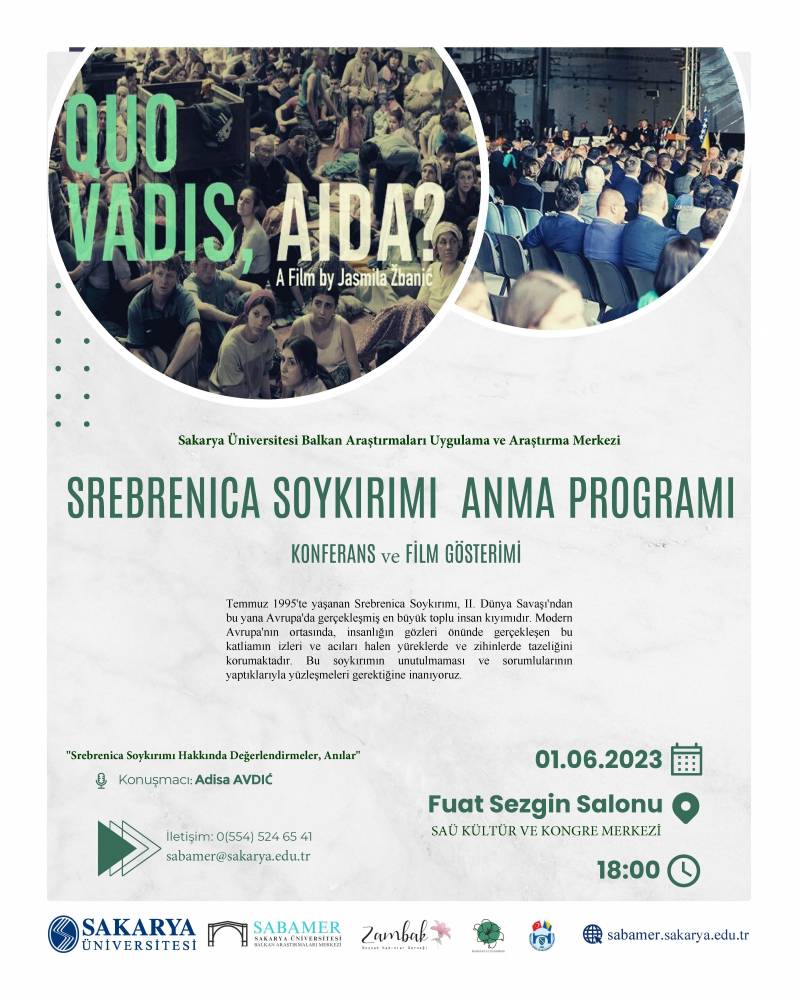 Sakarya Üniversitesi Balkan Araştırmaları Uygulama ve Araştırma Merkezi, Zambak Boşnak Kadınlar Derneği ile birlikte, Srebrenitsa Katliamının 28. yılı münasebetiyle bir anma programı düzenleyecektir.