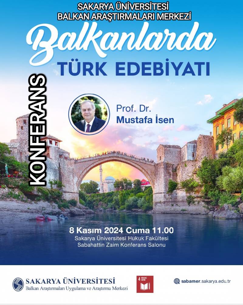 Sakarya Üniversitesi Balkan Araştırmaları Uygulama ve Araştırma Merkezi (SABAMER) tarafından düzenlenen “Balkanlarda Türk Edebiyatı” konulu konferans, 8 Kasım 2024 tarihinde büyük bir ilgiyle gerçekleştirildi. Konferansa, Türk edebiyatı ve kültür tarihçiliği alanında önemli çalışmalara imza atan Prof. Dr. Mustafa İsen konuşmacı olarak katıldı.